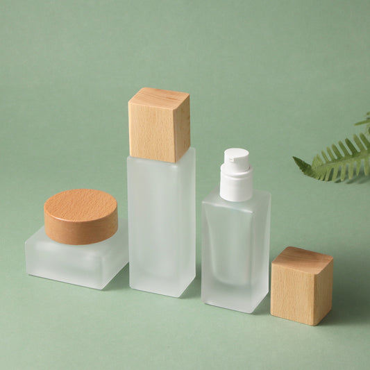 C) ガラスワンドロップポンプ(平角×木目角キャップ) 50ml