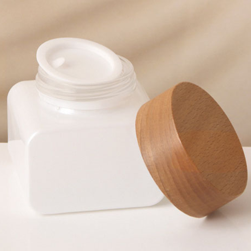 C) ガラスクリームジャー(白・角型×木目キャップ) 50g