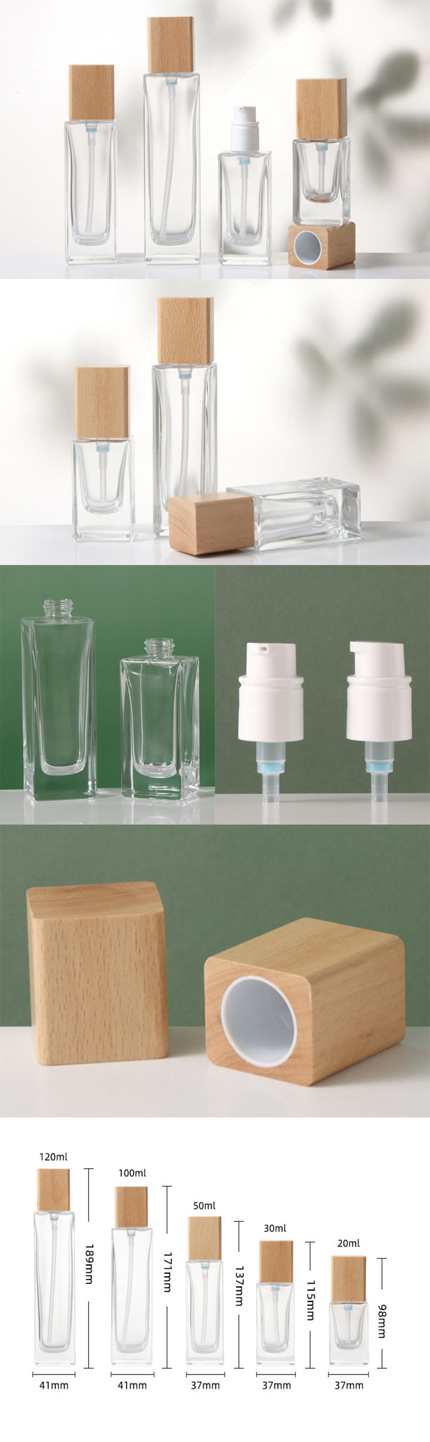 C) ガラスワンドロップポンプ(平角×木目角キャップ) 120ml