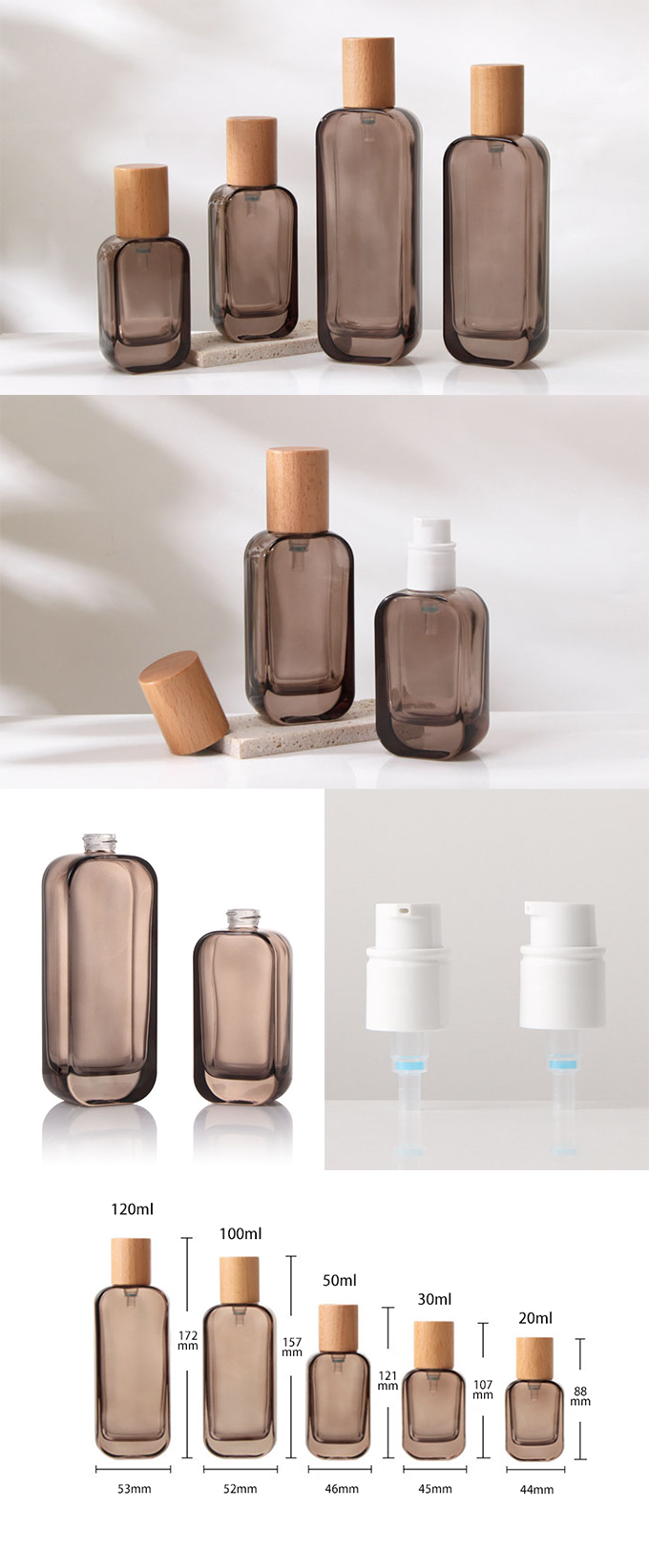C) ガラスワンドロップポンプ(黒半透明・角丸平角×木目キャップ) 120ml