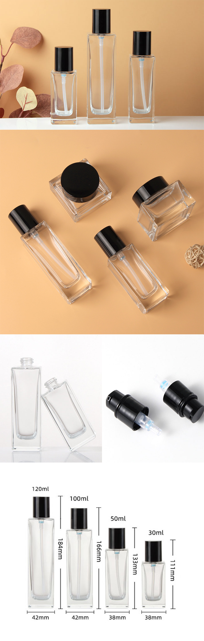 C) ガラスワンドロップポンプ(透明・平角×黒キャップ) 100ml