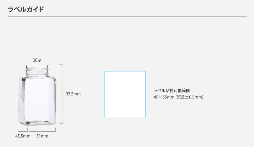 容量:125ml / 口径 : 38φ / 高さ:97.5mm / 幅 : 51mm / 奥行: 45.5mm