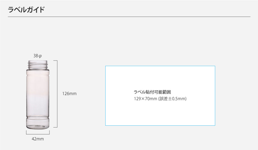 容量:140ml / 口径 : 38φ / 高さ:128.5mm / 直径 : 42mm
