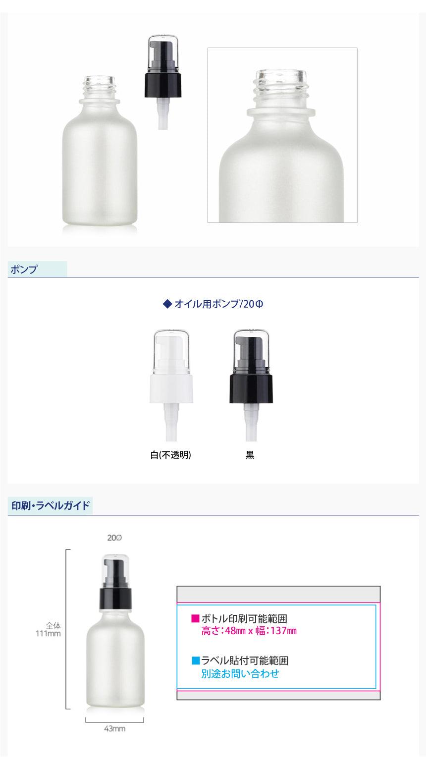 L) オイル用ガラスポンプボトル(半透明パール) CW50ml