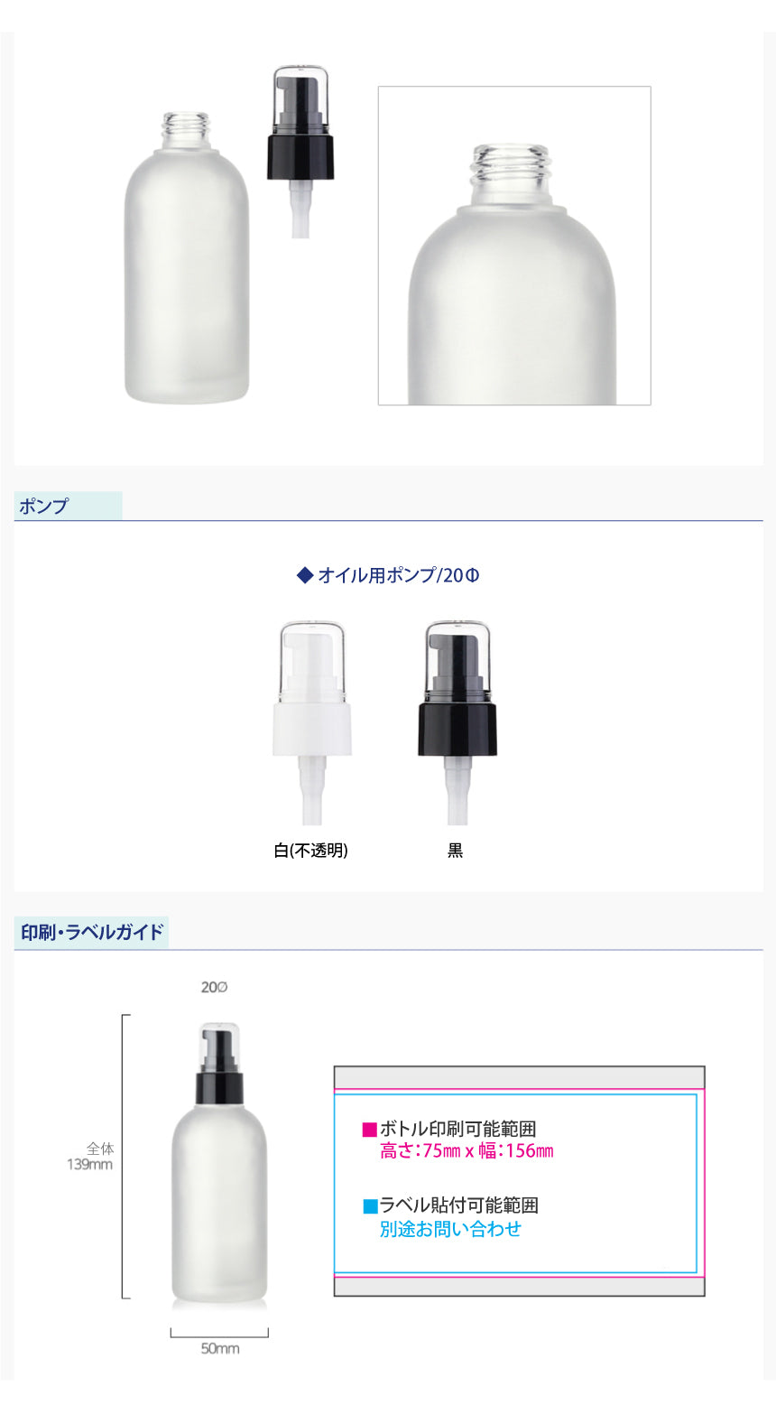L) オイル用ガラスポンプボトル(半透明パール) CR120ml