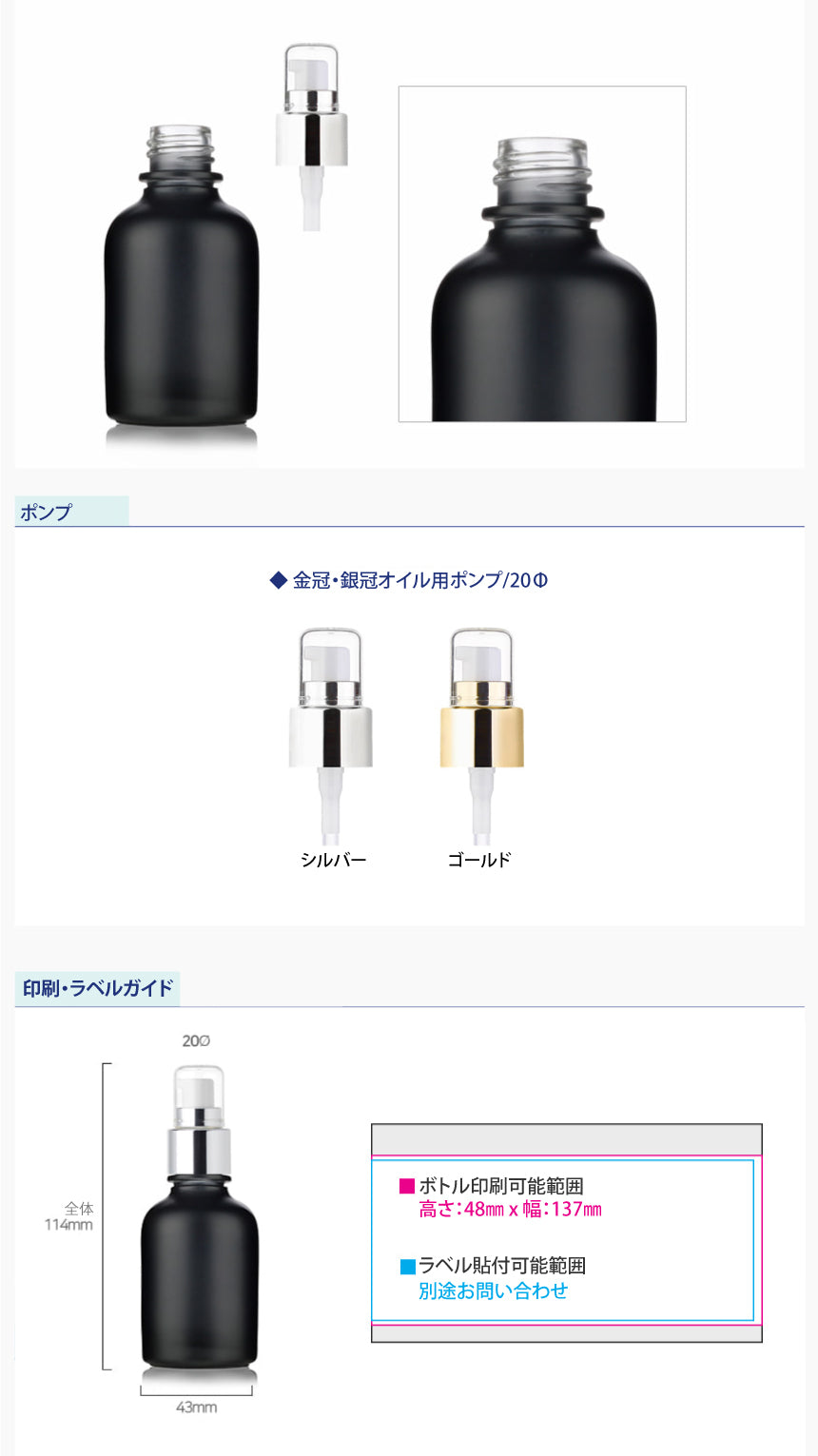 L) 金冠・銀冠オイル用ガラスポンプボトル(黒) CW50ml