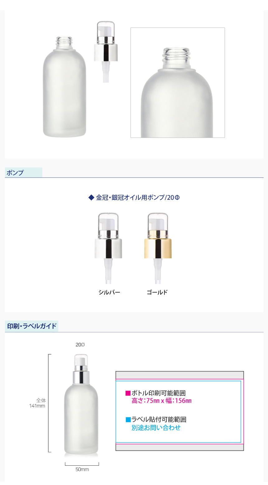 L) 金冠・銀冠オイル用ガラスポンプボトル(半透明パール) CR120ml