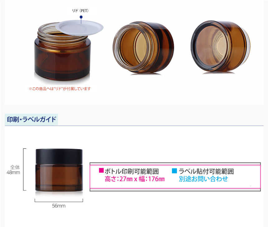 容量:50g / 口径 : 50φ / 高さ:48mm / 直径 : 56mm