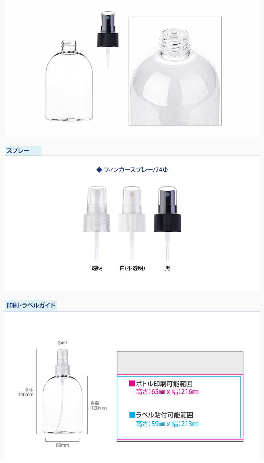 容量:300ml / 口径 : 24φ / 高さ:146mm / 直径 : 69mm