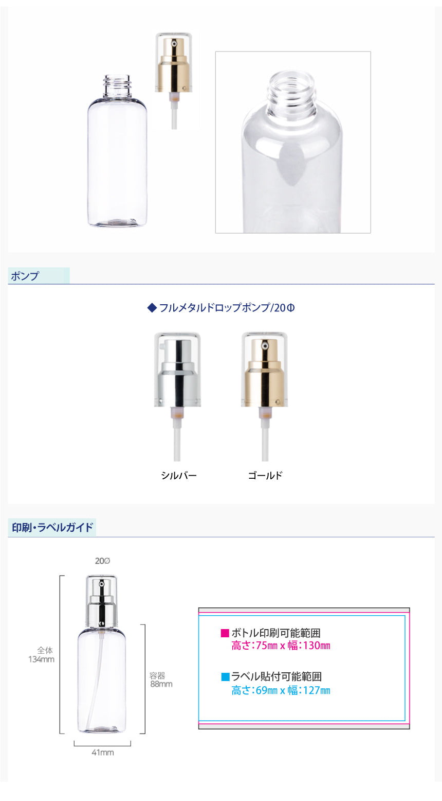 容量:100ml / 口径 : 20φ / 高さ:134mm / 直径 : 41mm