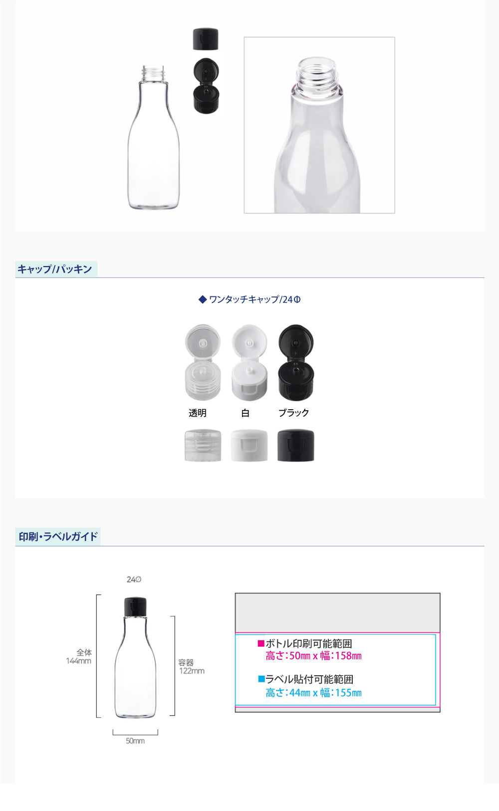 容量:150ml / 口径 : 24φ / 高さ:144mm / 直径 : 50mm