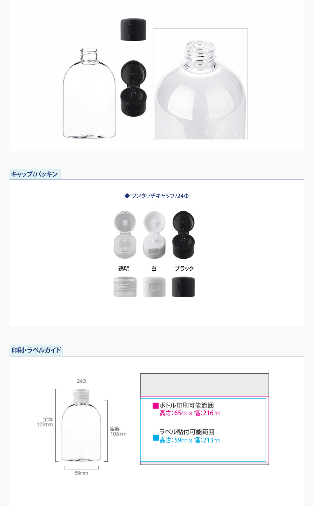 容量:300ml / 口径 : 24φ / 高さ:123mm / 直径 : 69mm