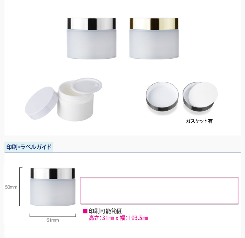 L) クリームジャー(中蓋付・半透明×金銀キャップ) C50g_PP