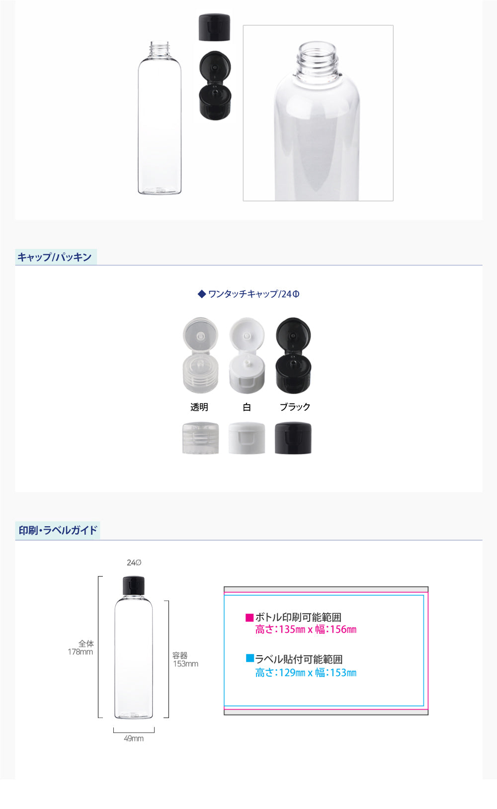 容量:250ml / 口径 : 24φ / 高さ:178mm / 直径 : 49mm
