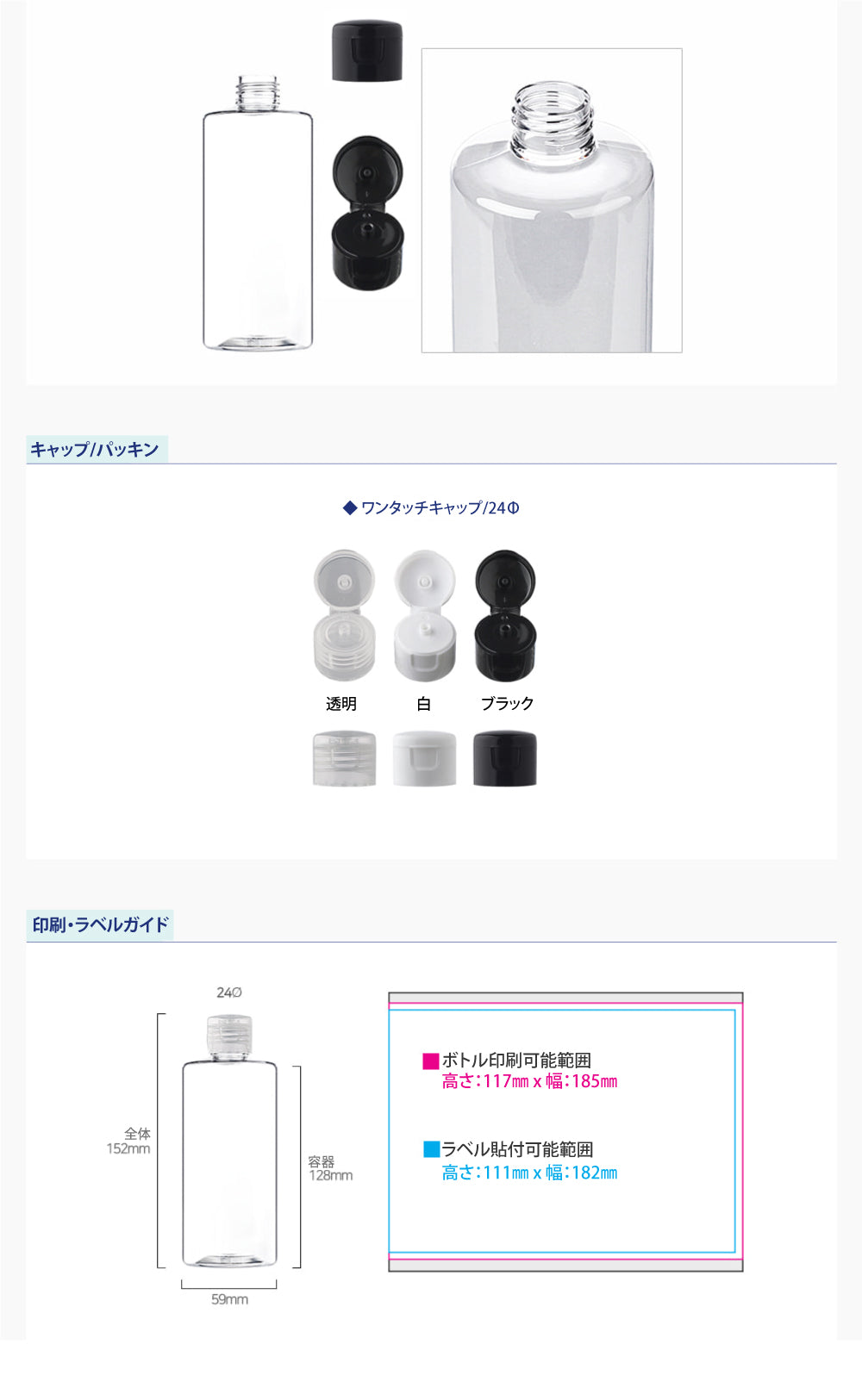 容量:300ml / 口径 : 24φ / 高さ:152mm / 直径 : 59mm