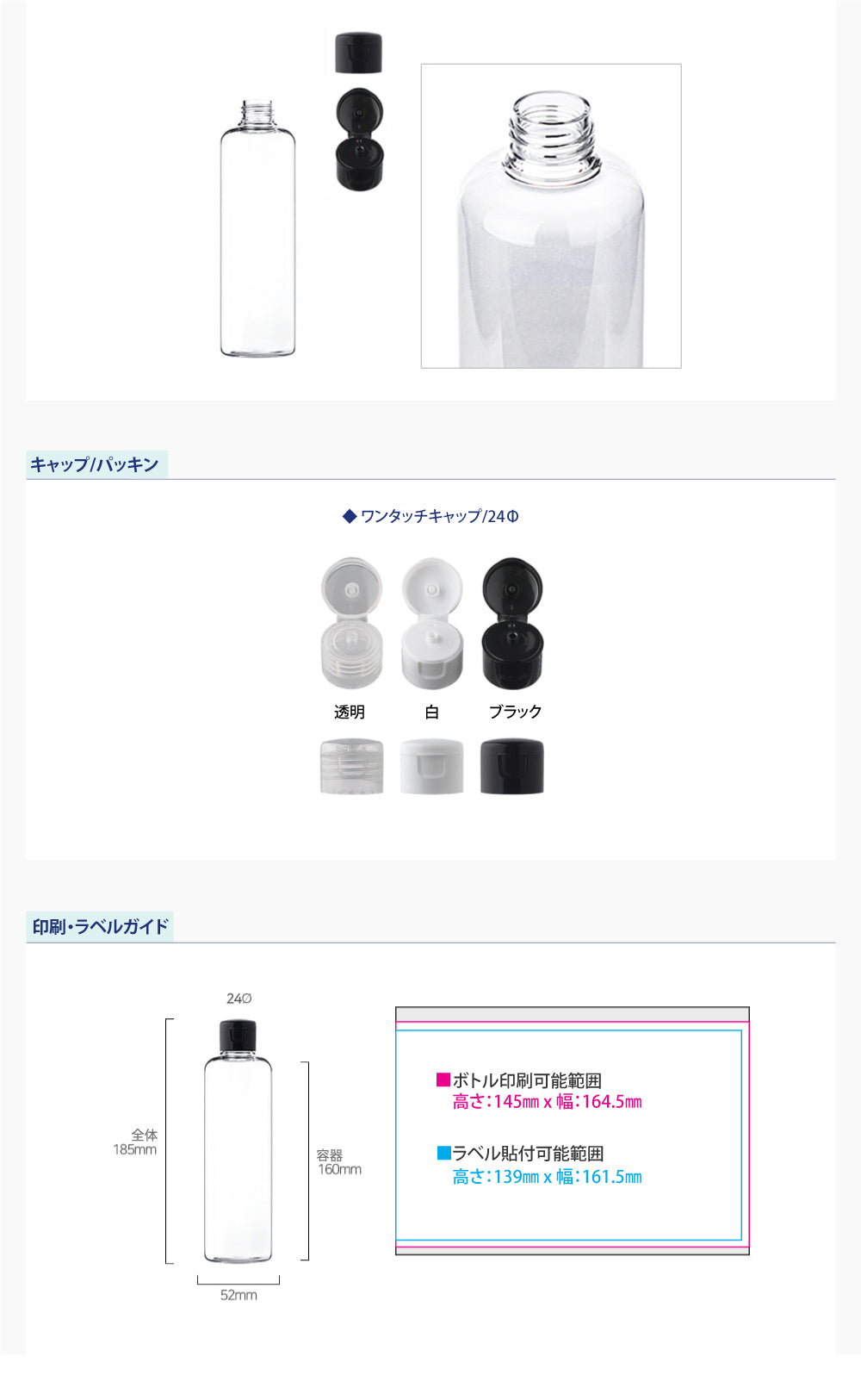 容量:300ml / 口径 : 24φ / 高さ:185mm / 直径 : 52mm
