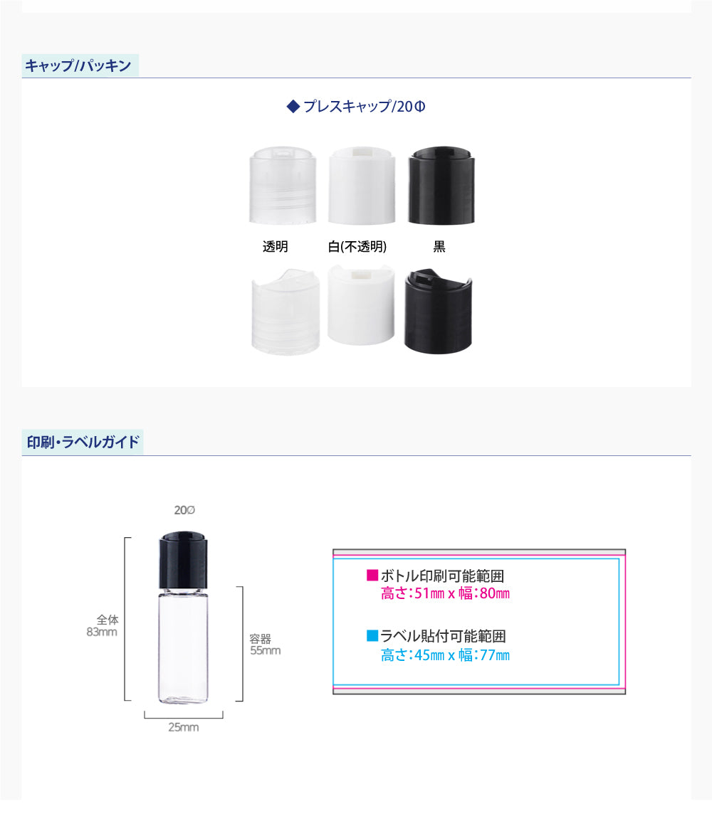 容量:20ml / 口径 : 20φ / 高さ:83mm / 直径 : 25mm