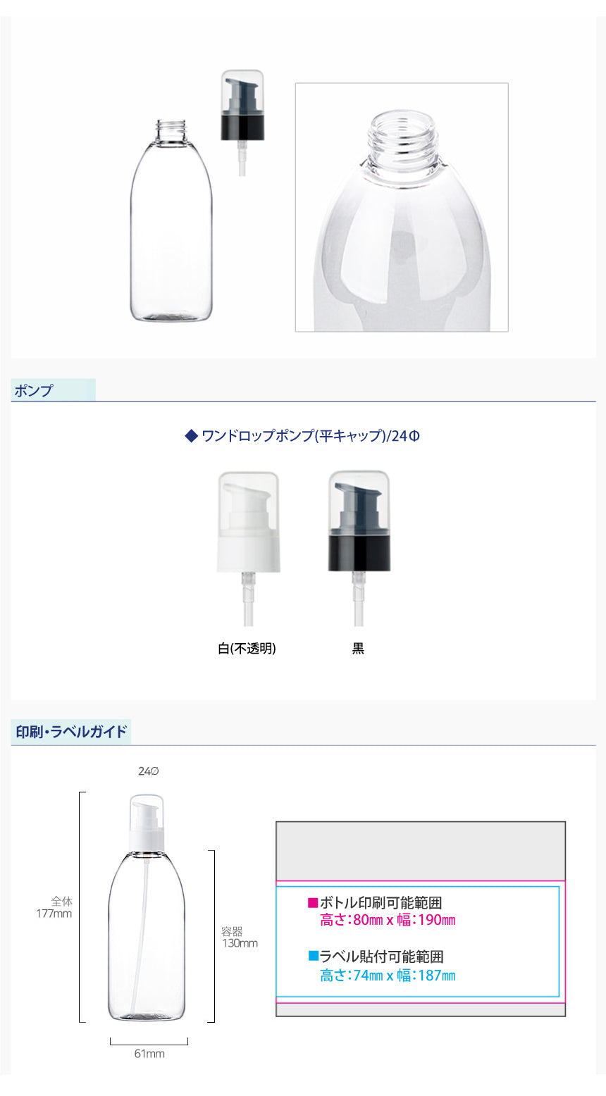 容量:300ml / 口径 : 24φ / 高さ:177mm / 直径 : 61mm