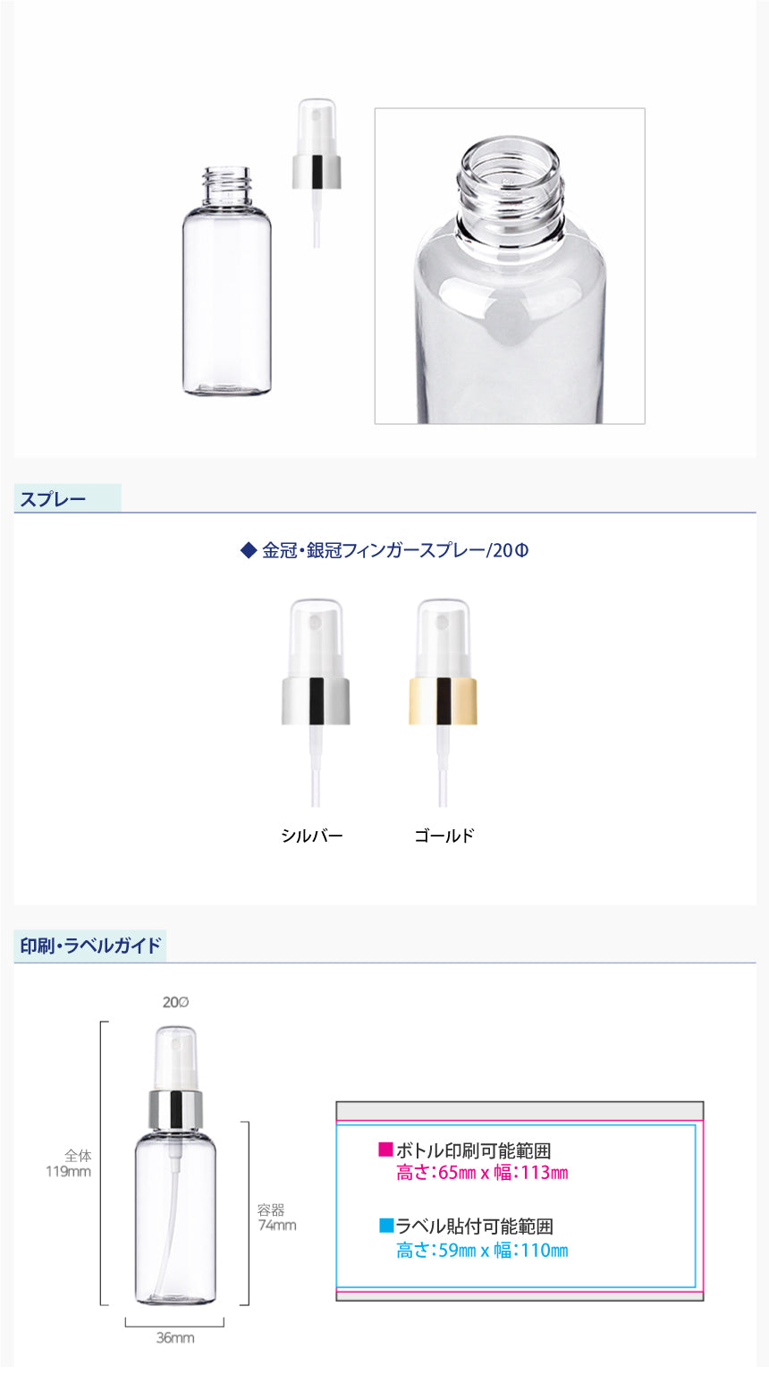 容量:60ml / 口径 : 20φ / 高さ:119mm / 直径 : 36mm