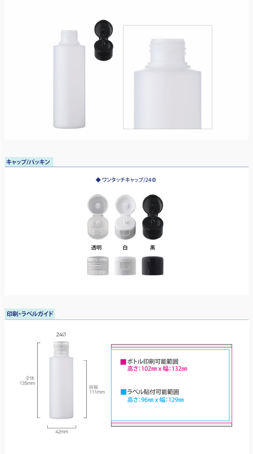 容量:120ml / 口径 : 24φ / 高さ:135mm / 直径 : 42mm
