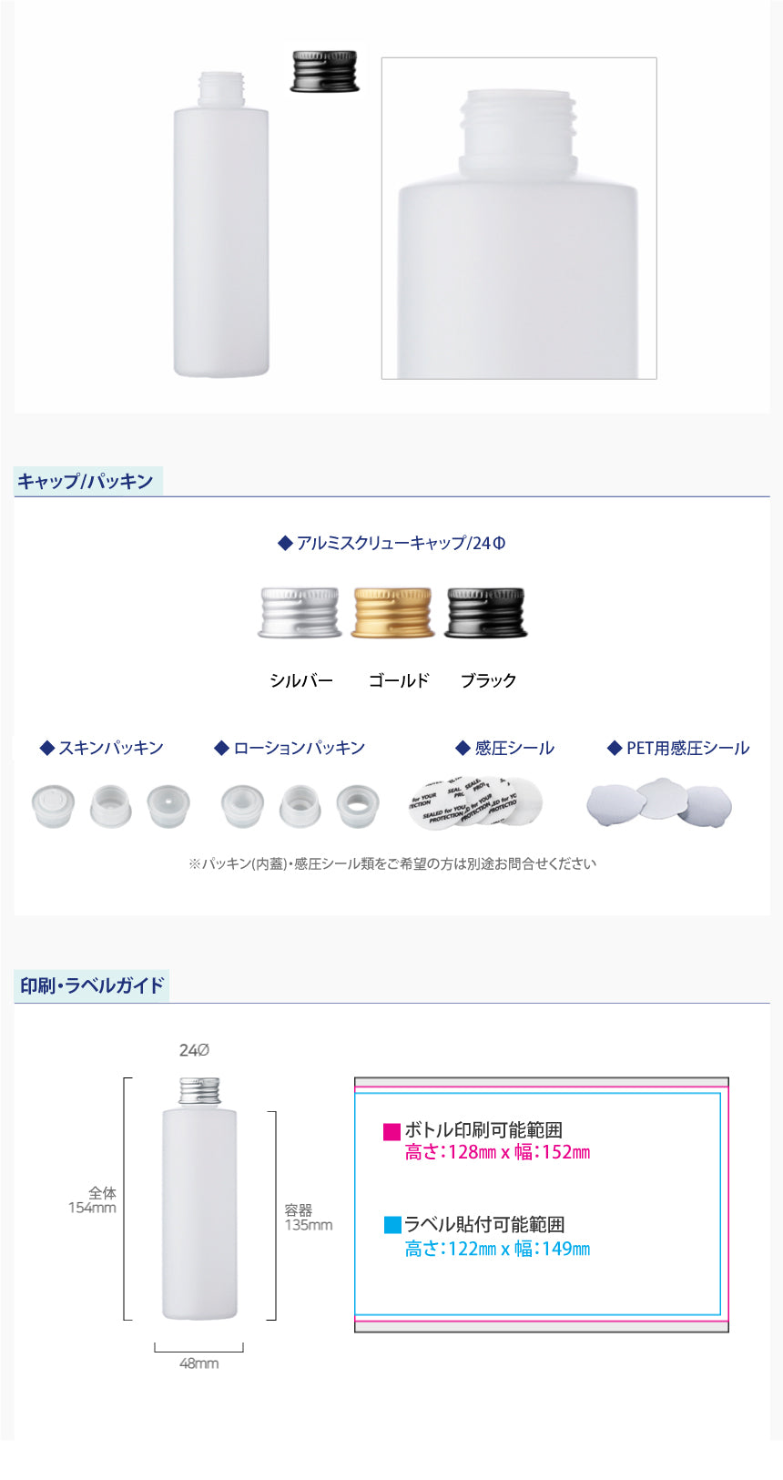 容量:200ml / 口径 : 24φ / 高さ:154mm / 直径 : 48mm