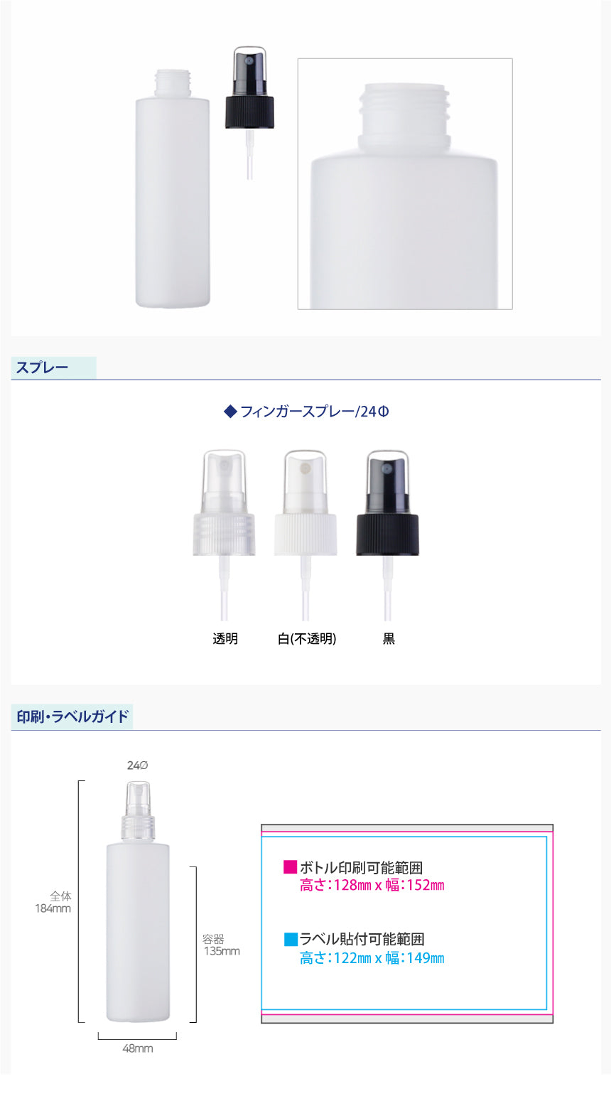 容量:200ml / 口径 : 24φ / 高さ:184mm / 直径 : 48mm