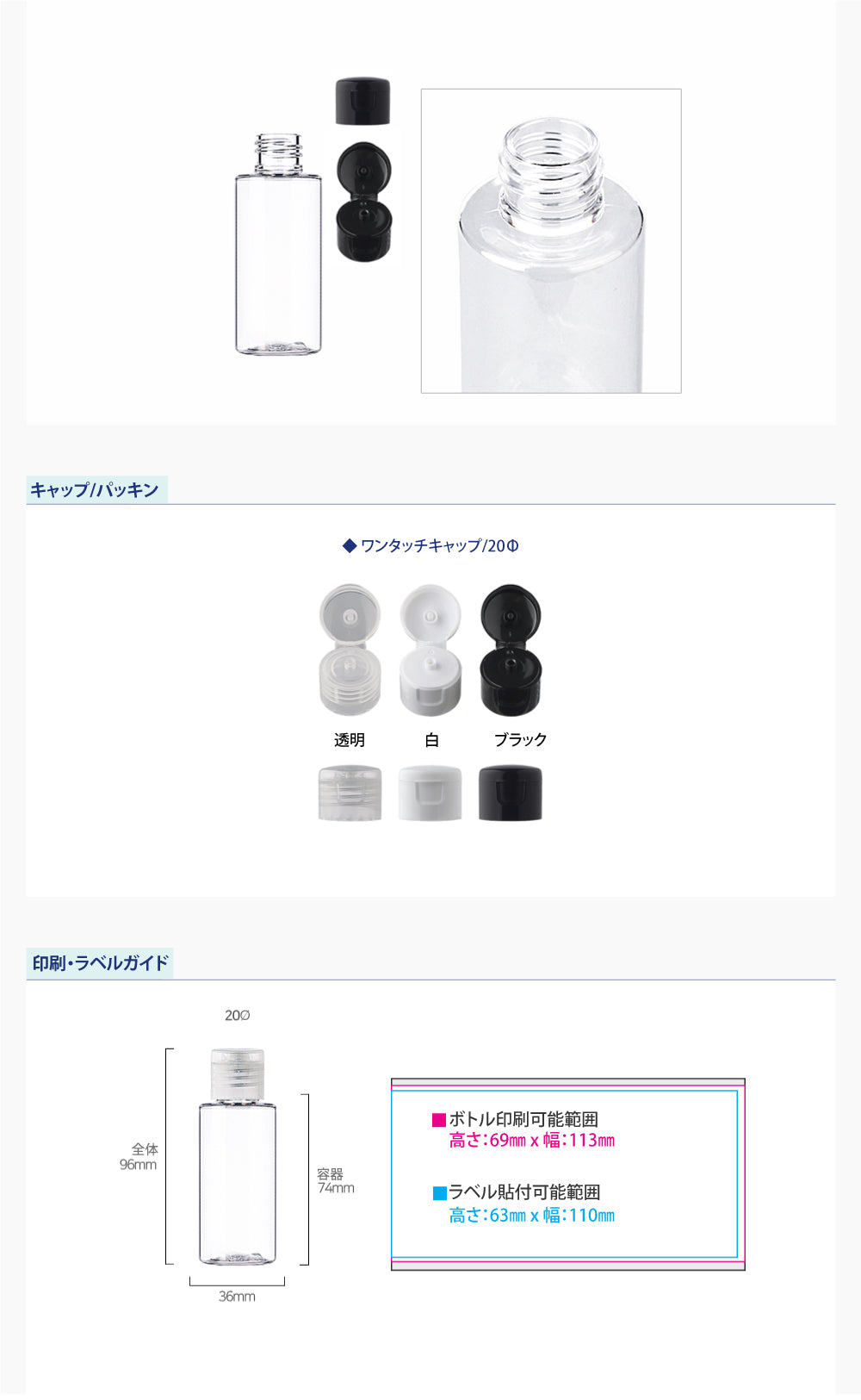 容量:60ml / 口径 : 20φ / 高さ:96mm / 直径 : 36mm