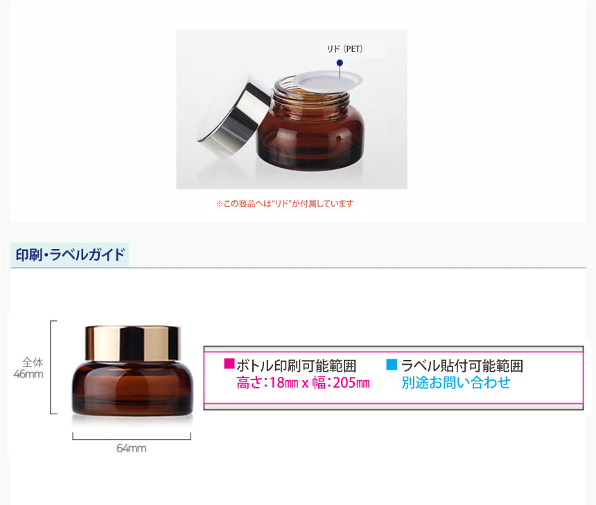 容量:50g / 口径 : 64φ / 高さ:46mm / 直径 : 64mm