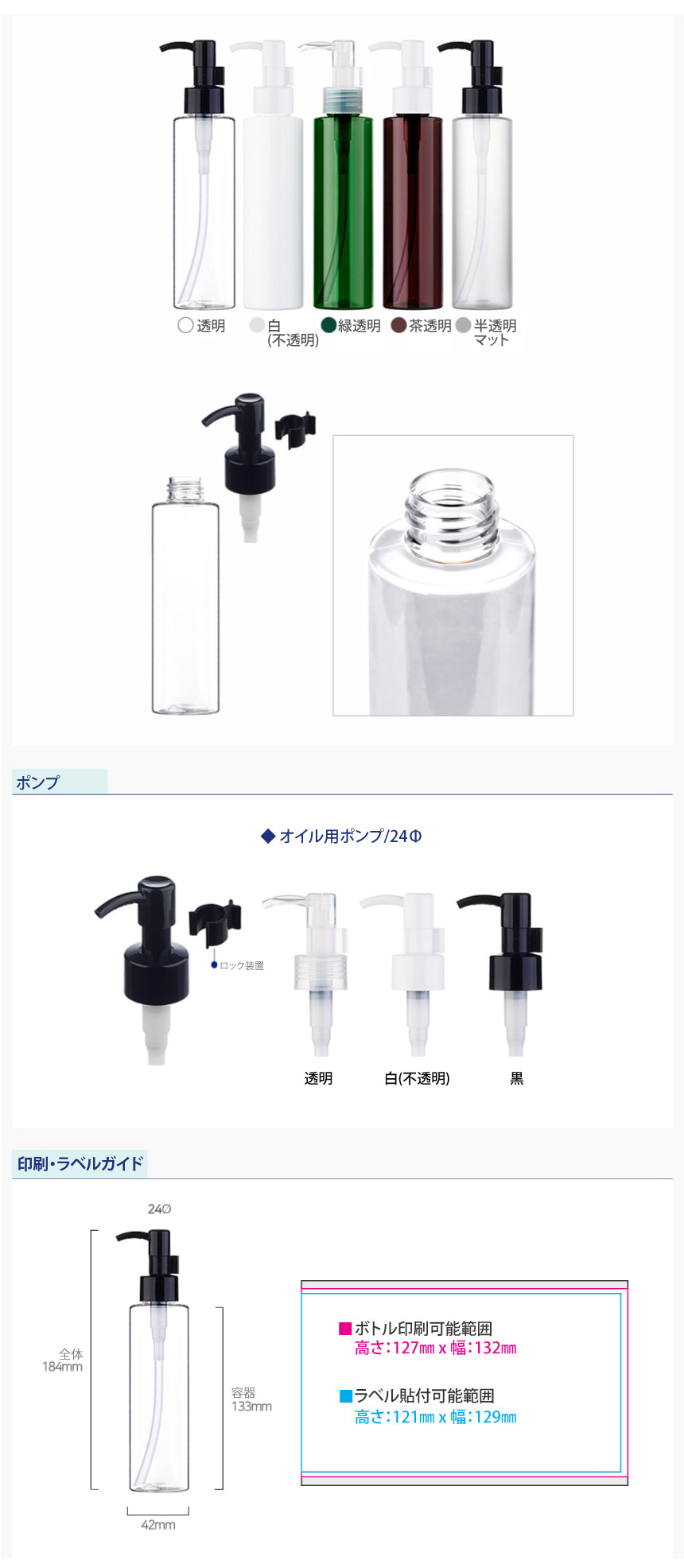 容量:150ml / 口径 : 24φ / 高さ:184mm / 直径 : 42mm