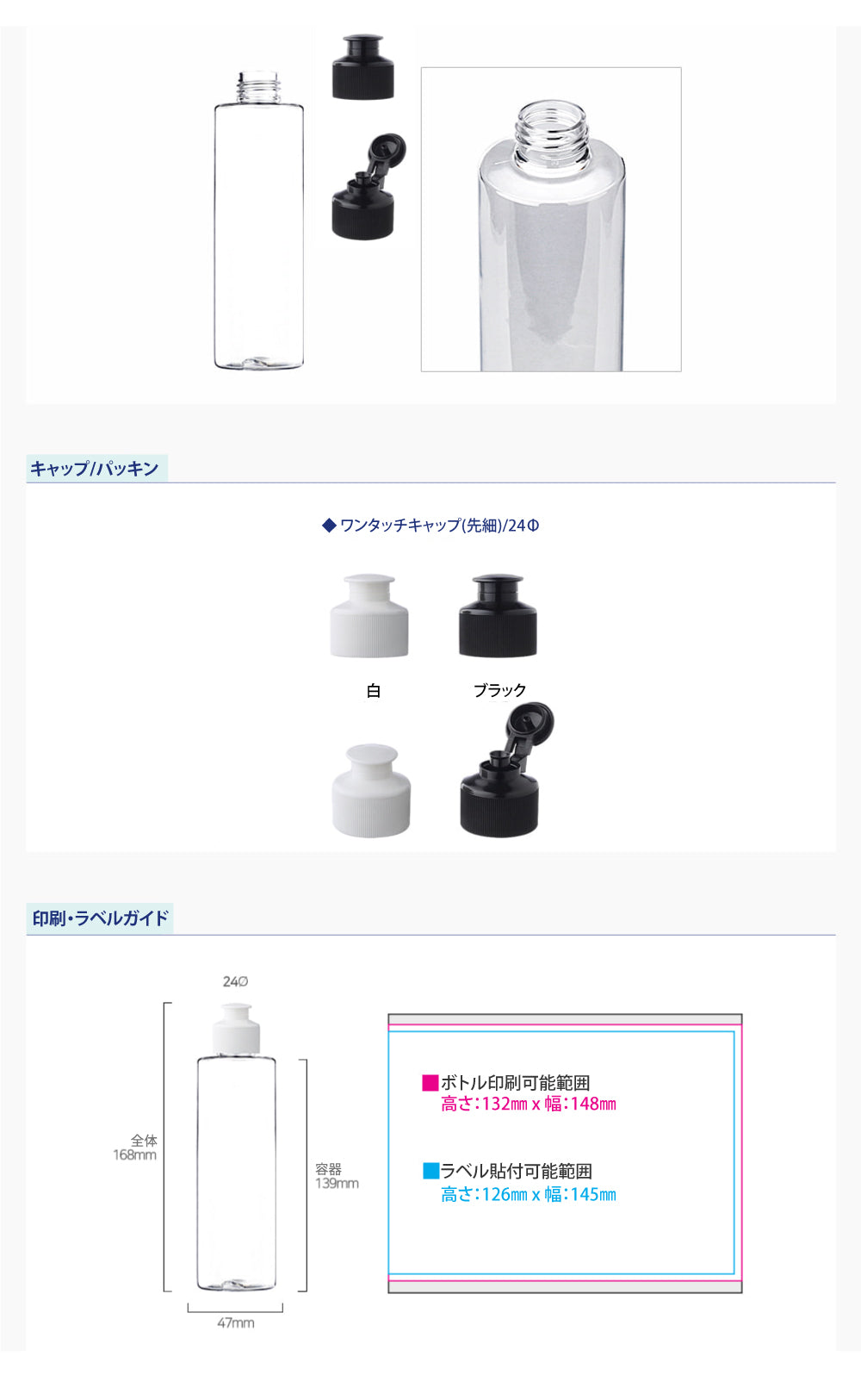 L) ワンタッチキャップボトル(先細) C200ml_PET