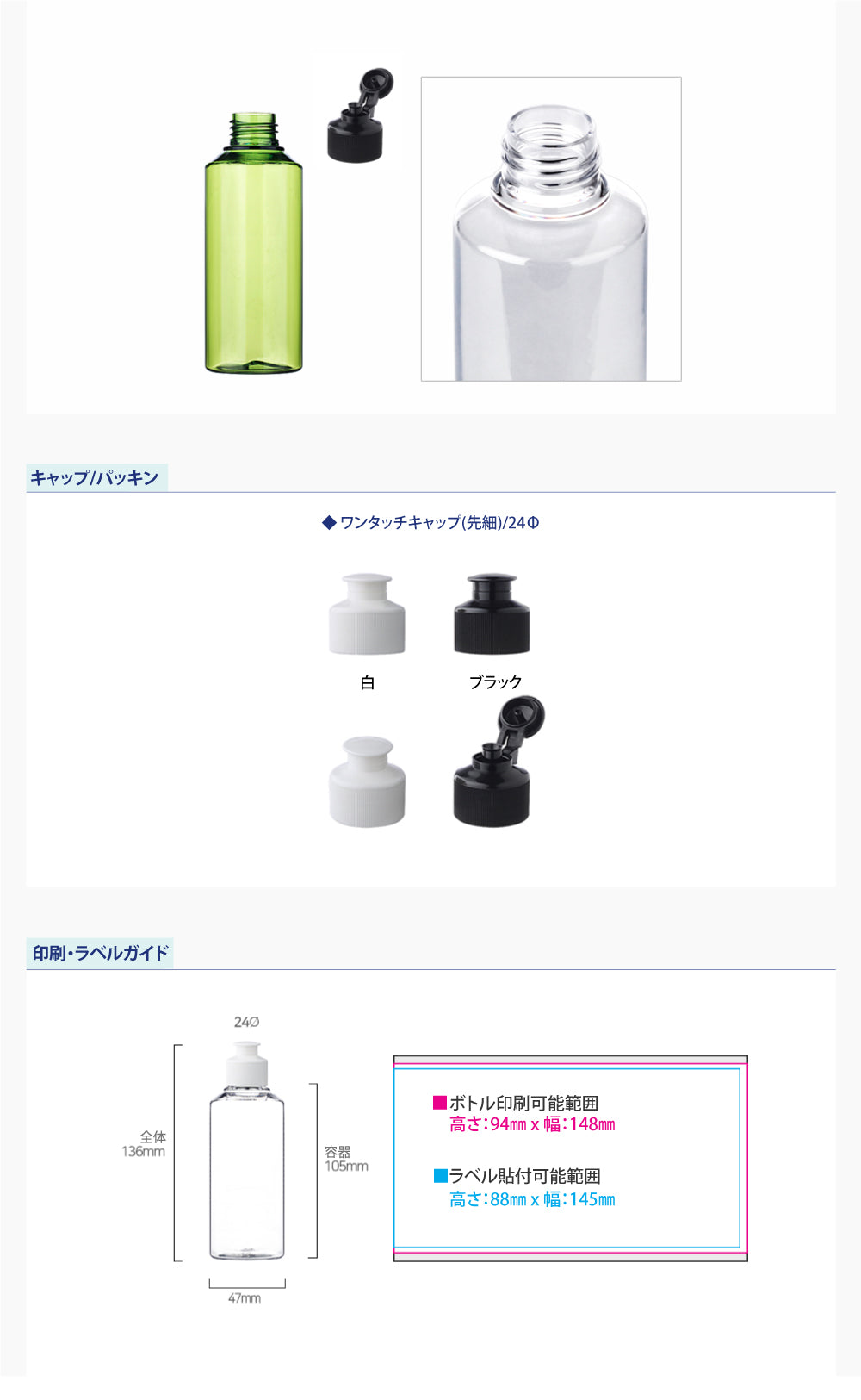 L) ワンタッチキャップボトル(先細) CA150ml_PET