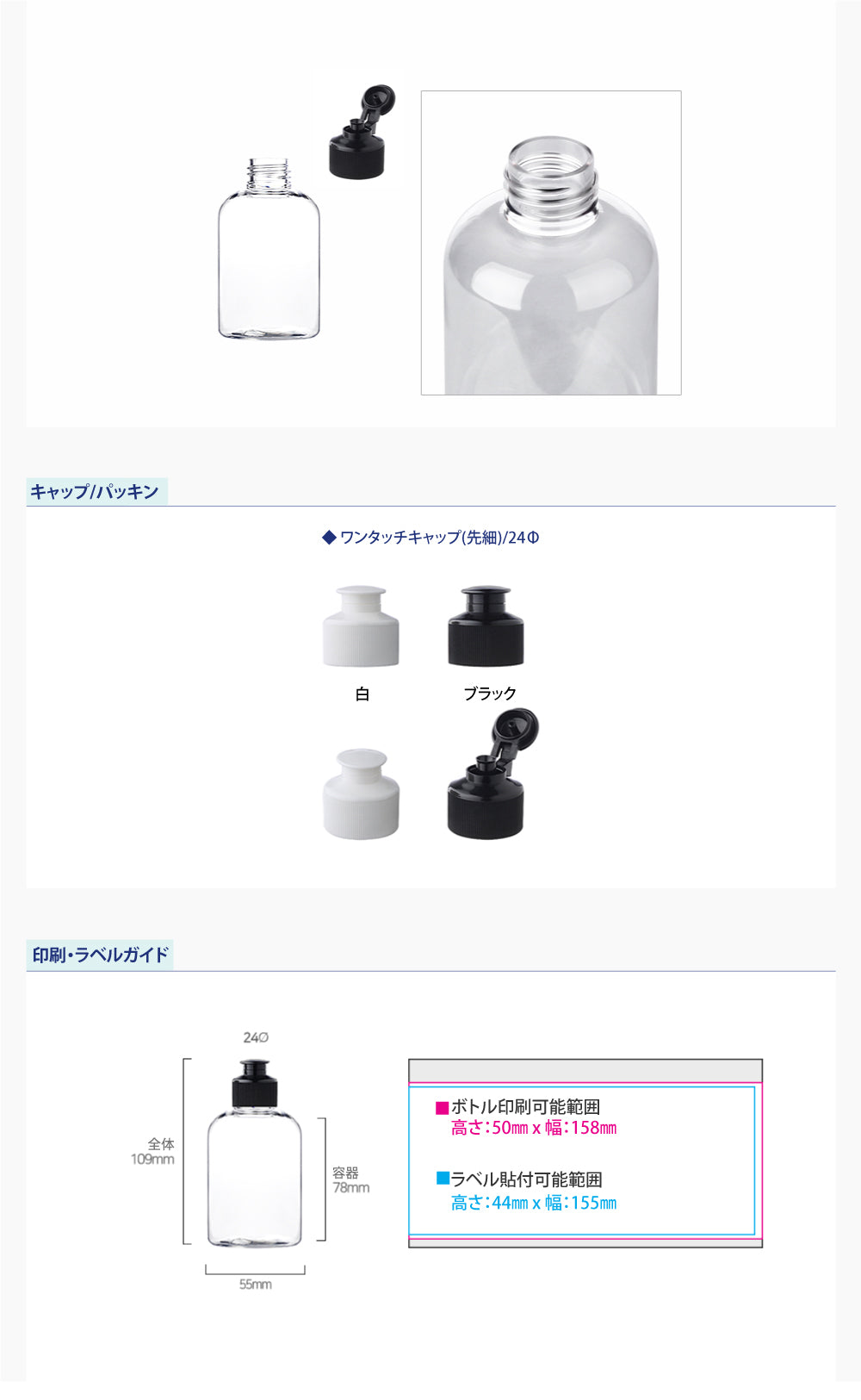 容量:150ml / 口径 : 24φ / 高さ:109mm / 直径 : 55mm