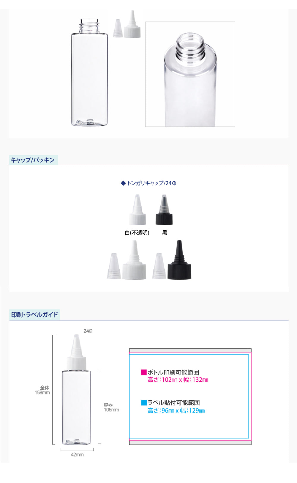 容量:120ml / 口径 : 24φ / 高さ:158mm / 直径 : 42mm