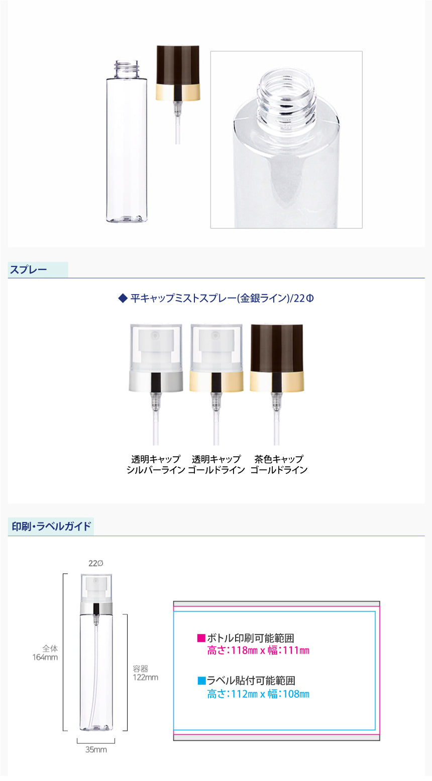 L) 平ミストスプレー(金銀ラインキャップ・22φ) C100ml_PET