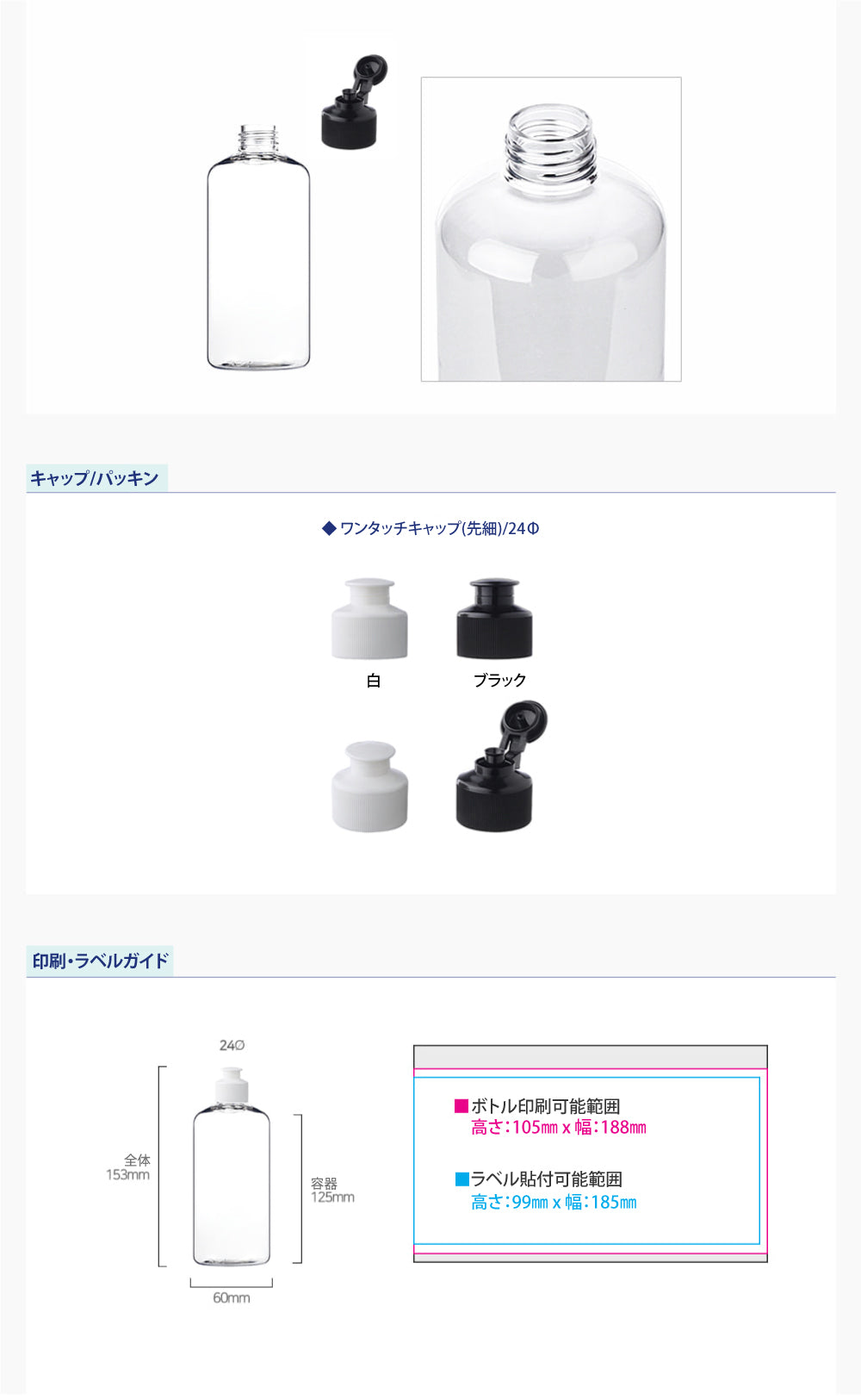 容量:300ml / 口径 : 24φ / 高さ:153mm / 直径 : 60mm