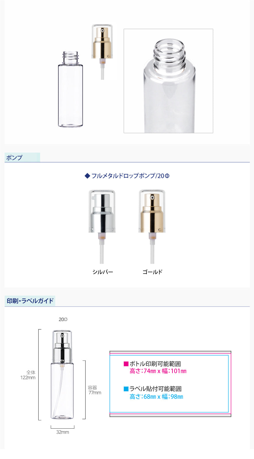 容量:50ml / 口径 : 20φ / 高さ:122mm / 直径 : 32mm