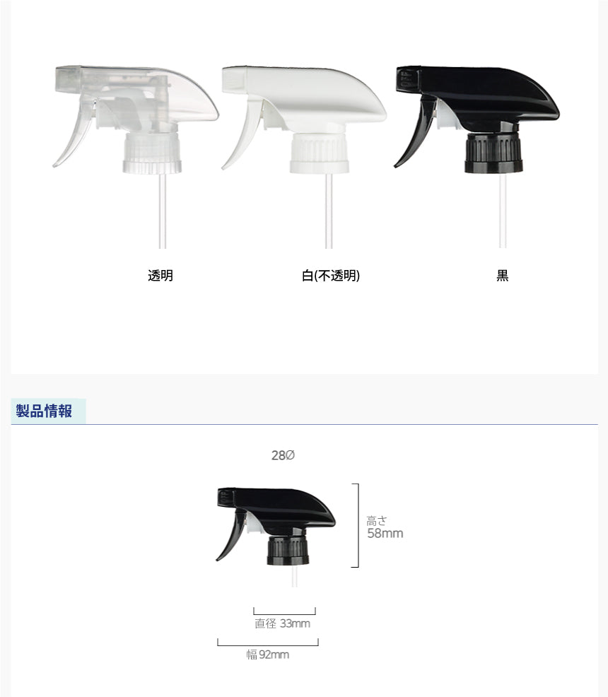 口径 : 28φ / 高さ:58mm / 直径 : 33mm / 長さ: 92mm