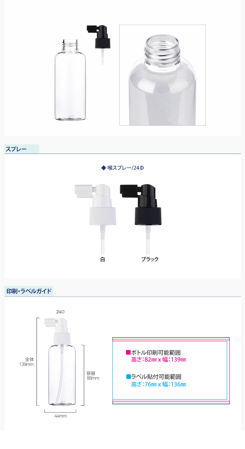 容量:120ml / 口径 : 24φ / 高さ:139mm / 直径 : 44mm