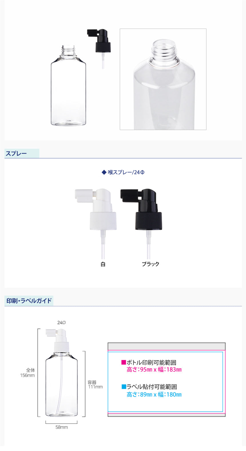 容量:250ml / 口径 : 24φ / 高さ:173mm / 直径 : 55mm