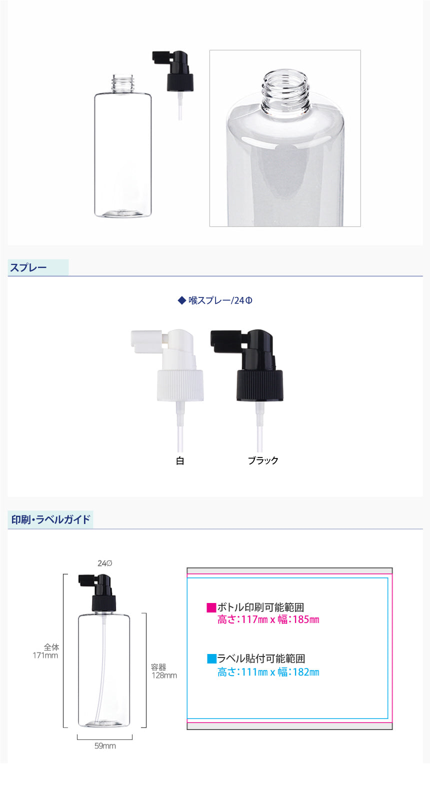 容量:300ml / 口径 : 24φ / 高さ:171mm / 直径 : 59mm