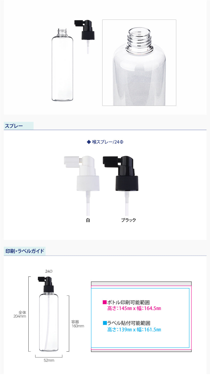 容量:300ml / 口径 : 24φ / 高さ:204mm / 直径 : 52mm
