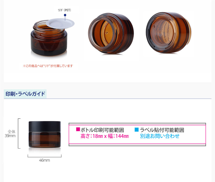 容量:20g / 口径 : 46φ / 高さ:39mm / 直径 : 46mm