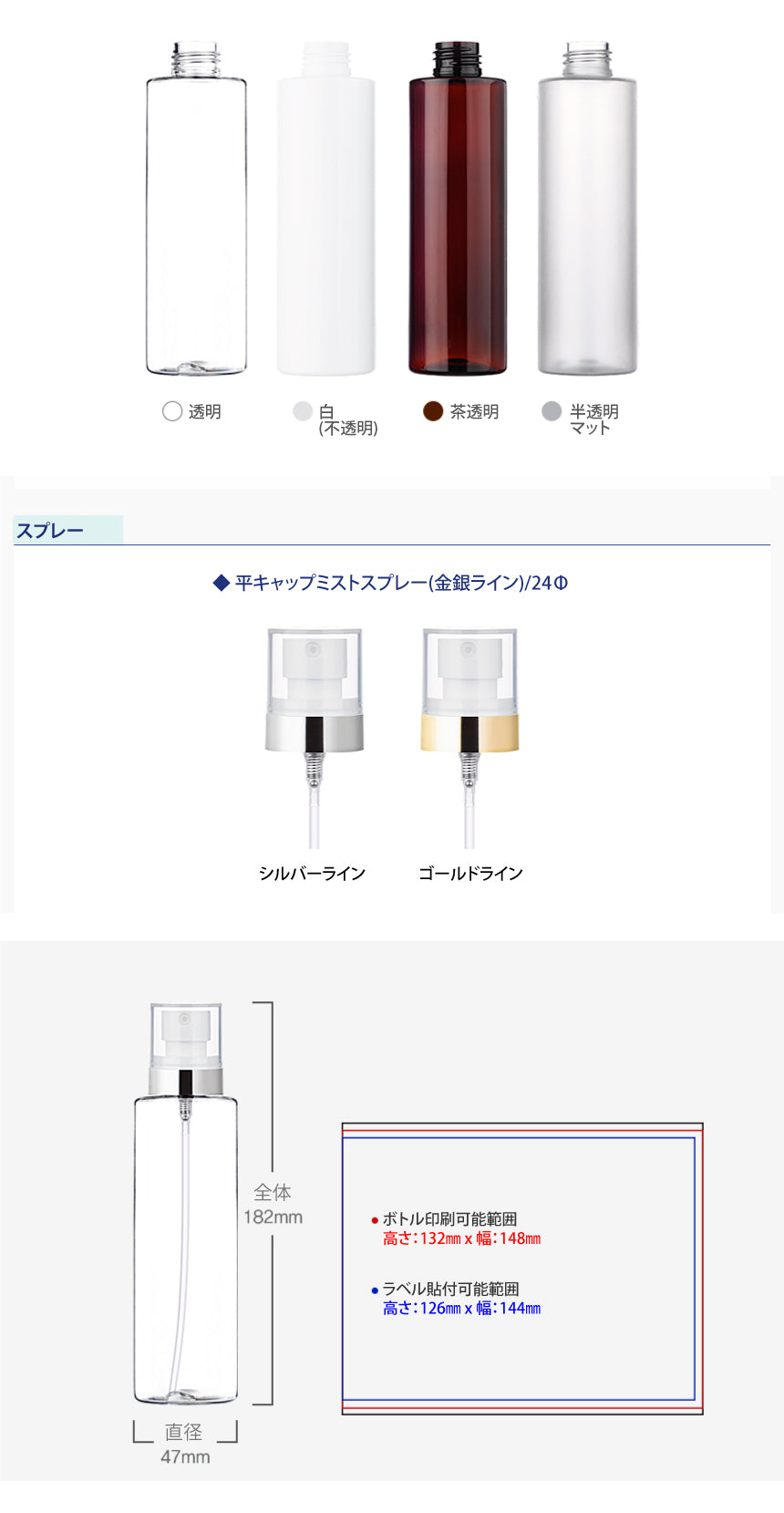 L) 平ミストスプレー(金銀ラインキャップ) C200ml_PET