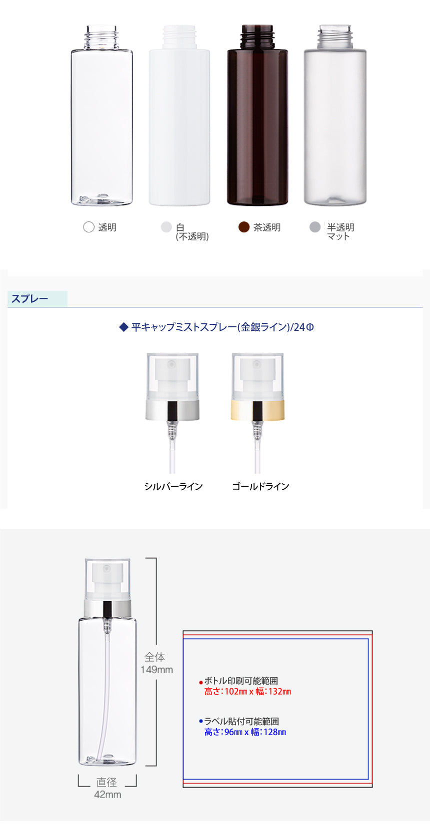 L) 平ミストスプレー(金銀ラインキャップ) C120ml_PET