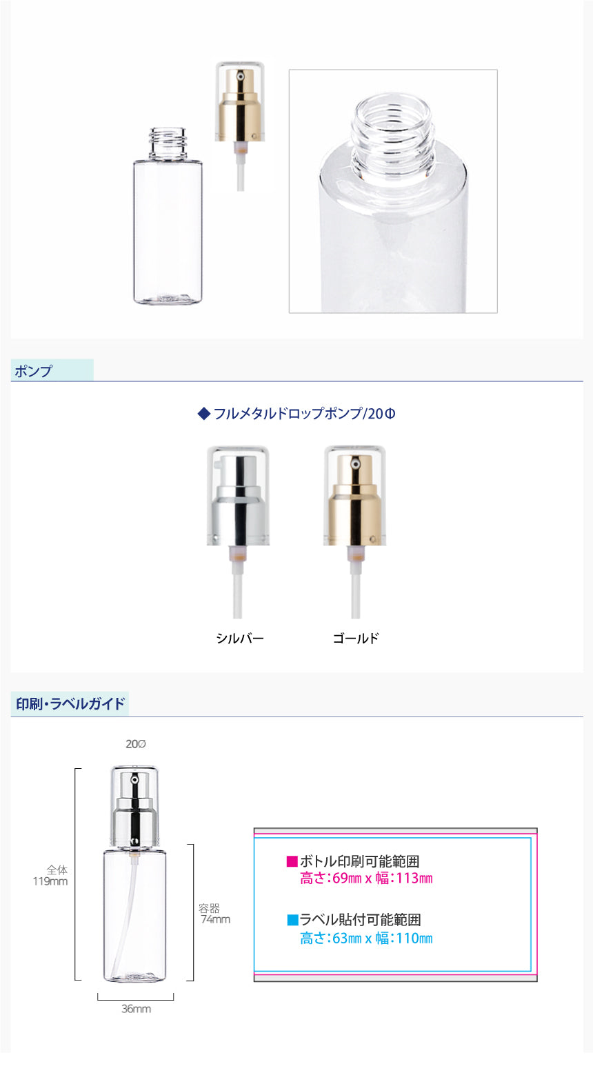 容量:60ml / 口径 : 20φ / 高さ:119mm / 直径 : 36mm