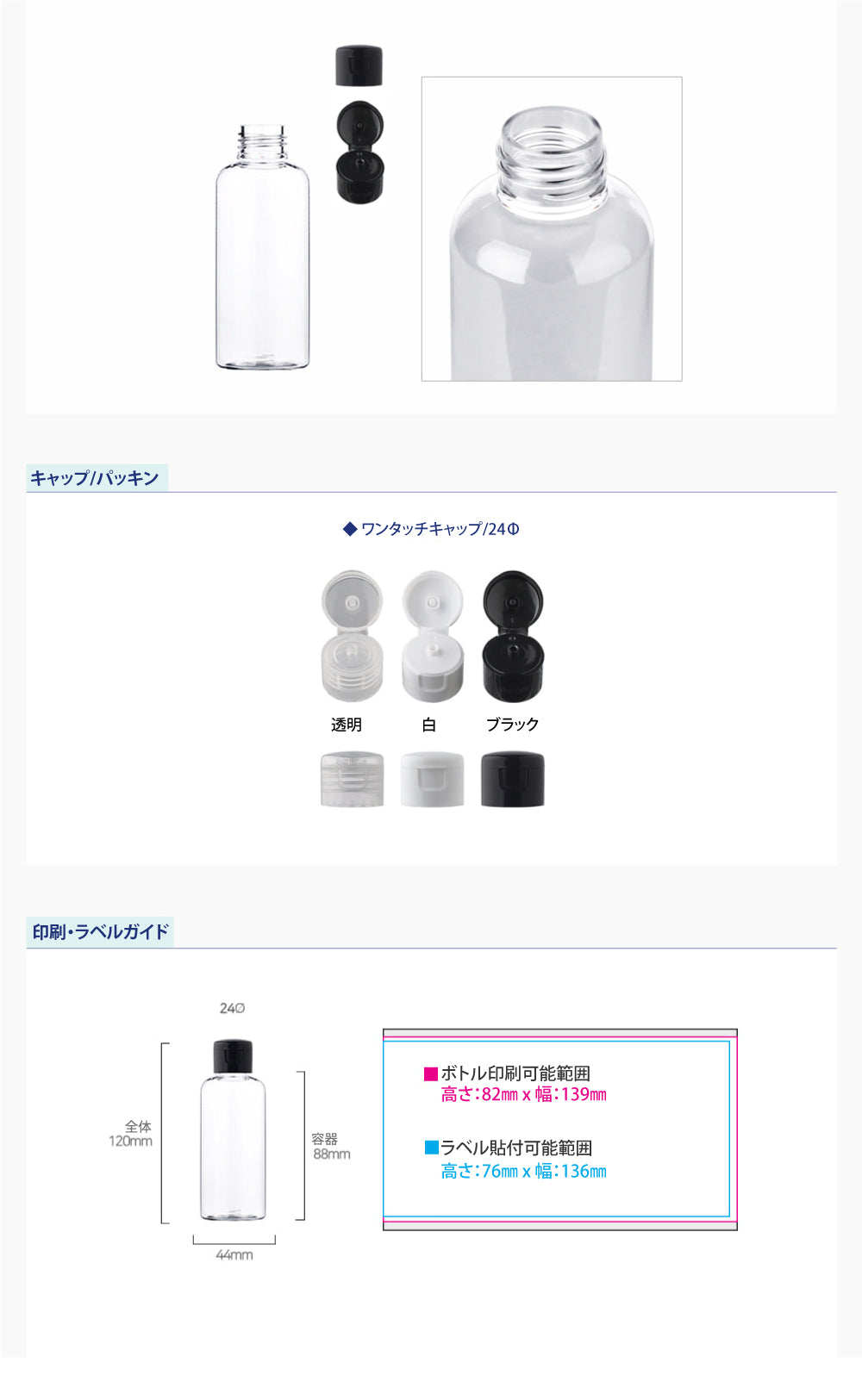 容量:120ml / 口径 : 24φ / 高さ:120mm / 直径 : 44mm