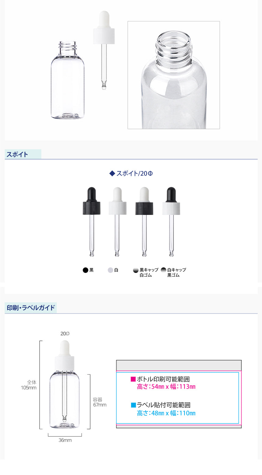 容量:50ml / 口径 : 20φ / 高さ:105mm / 直径 : 36mm