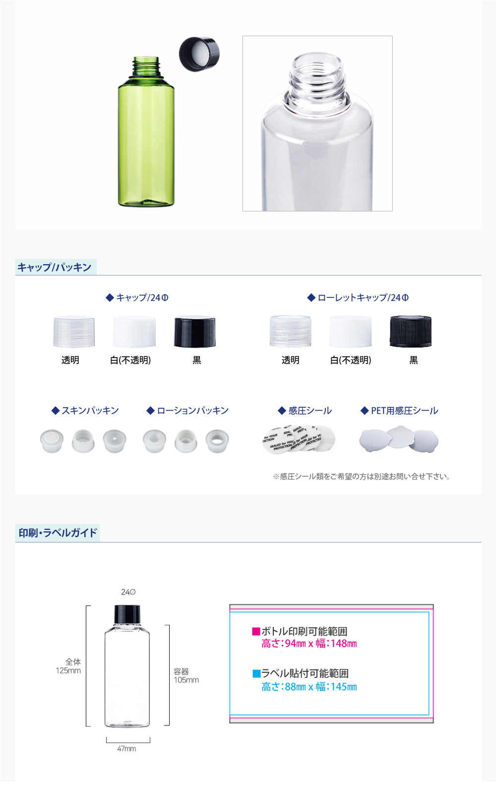 容量:150ml / 口径 : 24φ / 高さ:125mm / 直径 : 47mm