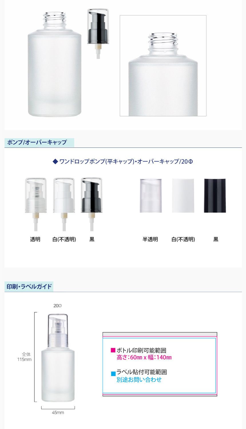 容量:50ml / 口径 : 20φ / 高さ:115mm / 直径 : 45mm