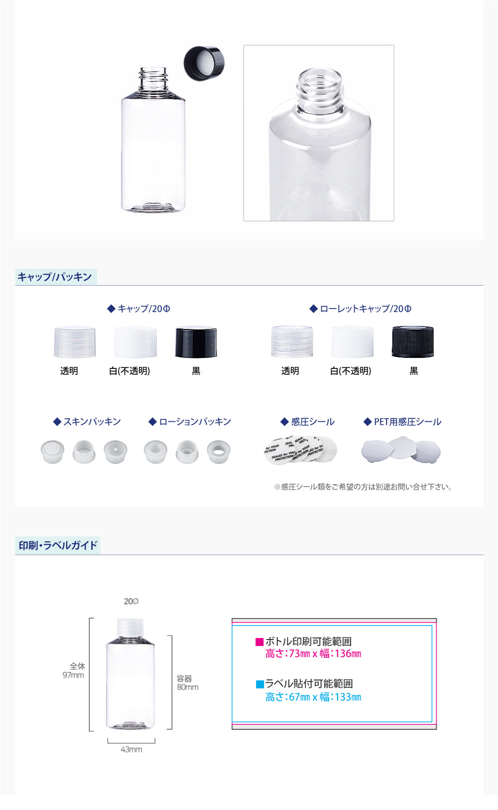 容量:100ml / 口径 : 20φ / 高さ:97mm / 直径 : 43mm